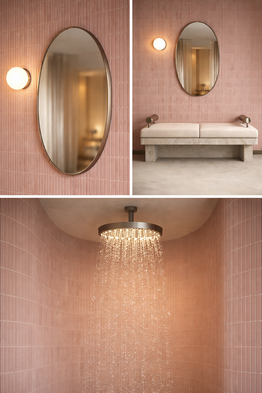Bathroom fixtures and finishes: basins, tapware, shower heads, towel rails, and accessories
